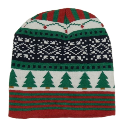Zeleno-červená vzorovaná pletená vánoční čepice