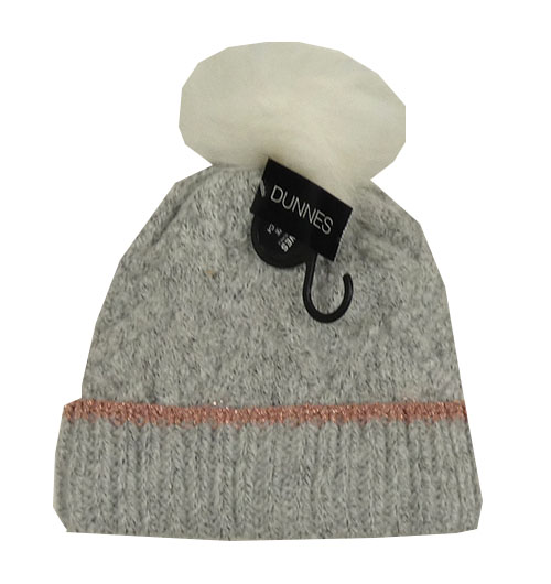 Nové - Šedá melírovaná pletená čepice s bambulí Dunnes