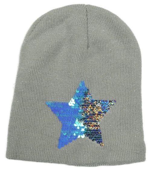 Šedo-stříbrná pletená čepice s hvězdou z flitrů X-mail