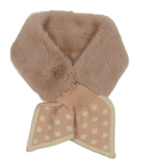 Starorůžová kožešinová čelenka s mašlí s puntíky