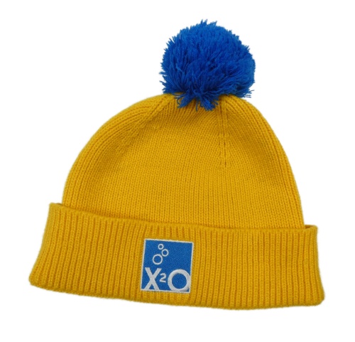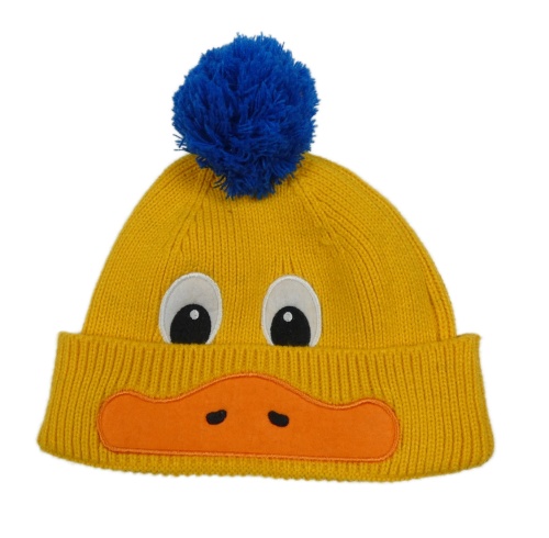 Hořčicová pletená čepice s bambulí - kachna