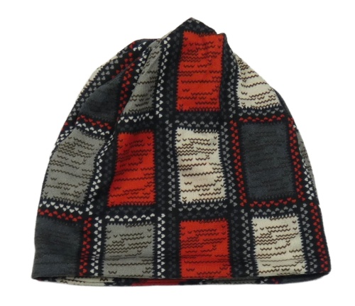 Šedo-červeno-černá kostkovaná čepice
