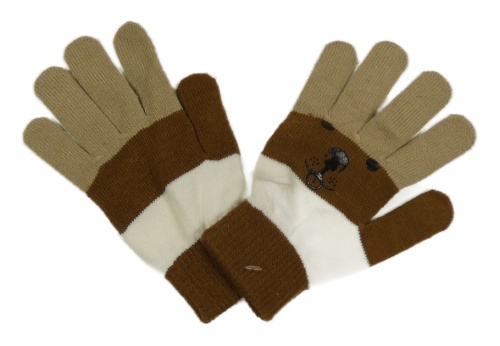 Hnědo-bílé pruhované pletené prstové rukavice s čumákem