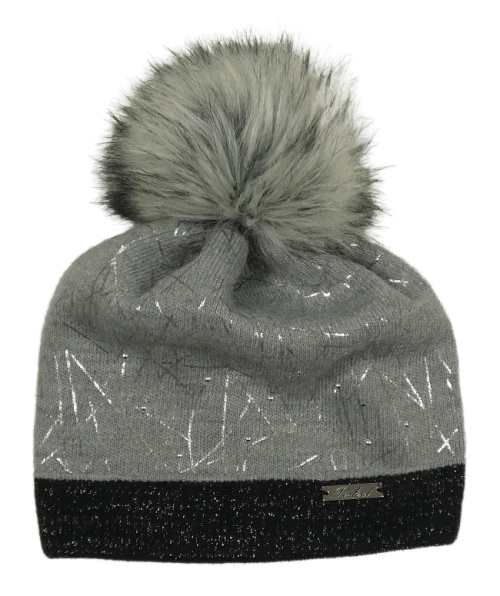 Šedo-černá vzorovaná pletená čepice s bambulí