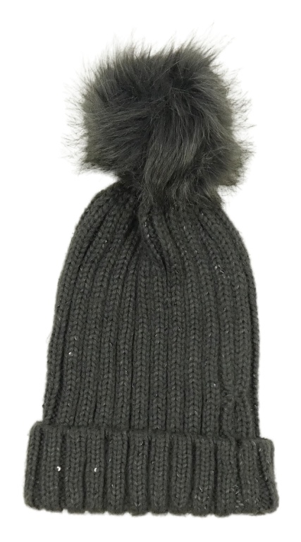 Šedá pletená žebrovaná čepice s flitry a bambulí Hallhuber