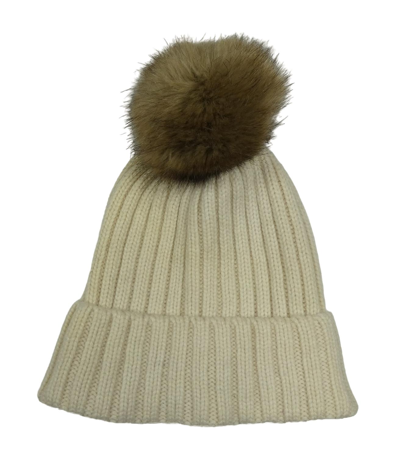 Krémová žebrovaná vlněná čepice s bambulí H&M