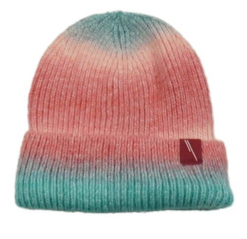 Růžovo-zelená ombré vlněná čepice