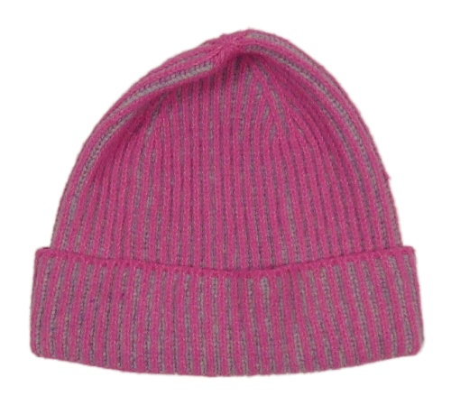 Růžovo-šedá pletená žebrovaná čepice Yigga