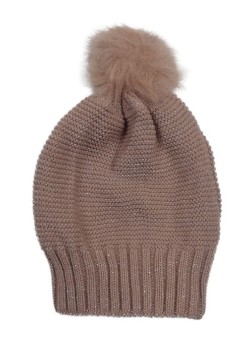 Starorůžová třpytivá čepice s bambulí