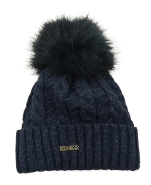 Tmavomodrá pletená podšitá vlněná čepice s bambulí Lachti