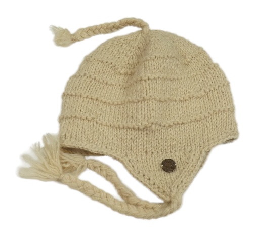 Béžová vlněná čepice s třásněmi