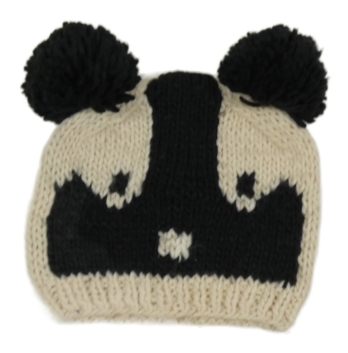 Smetanovo-černá pletená čepice s čumákem a bambulemi