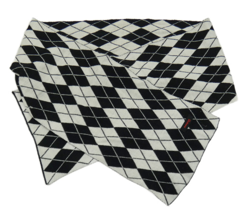 Černo-bílá károvaná šála s nášivkou