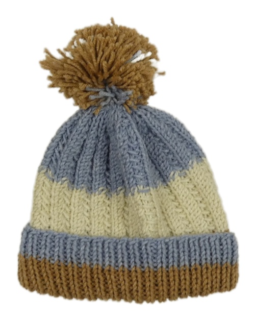 Modro-smetanovo-hnědá pletená čepice s bambulí