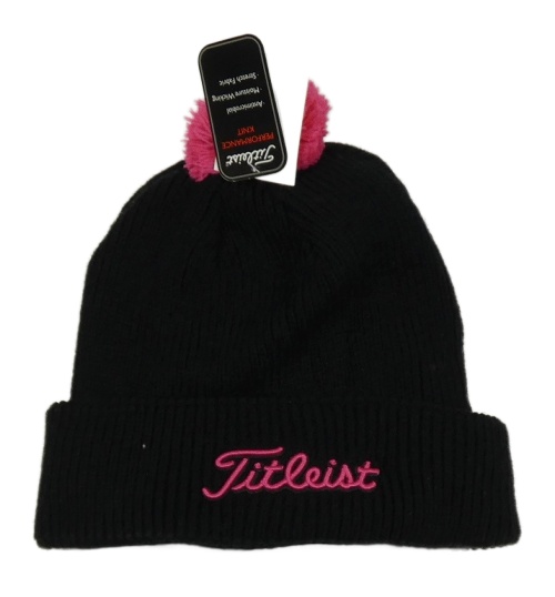Nové - Černo-růžová čepice s nápisem a bambulí