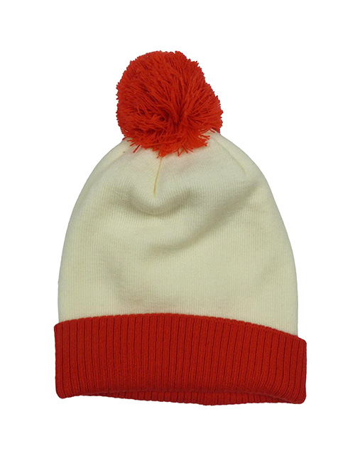 Krémovo-červená pletená čepice s bambulí Beechfield