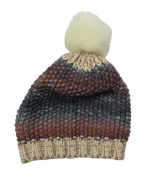 Modro-starorůžovo-smetanová melírovaná pletená čepice s bambulí