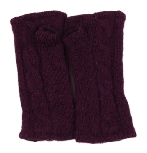 Tmavofialové vzorované vlněné svetrové návleky na ruce
