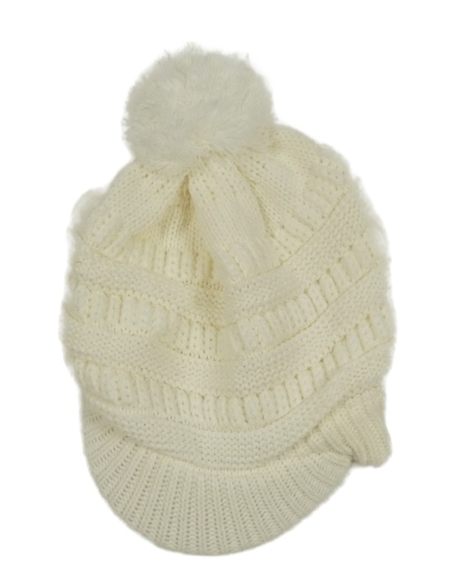 Bílá pletená čepice s kšiltem a bambulí