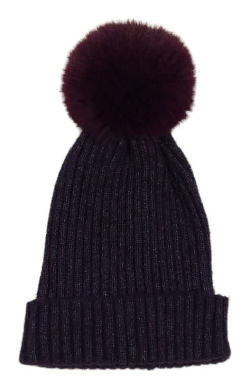 Tmavofialová melírovaná žebrovaná pletená čepice s bambulí