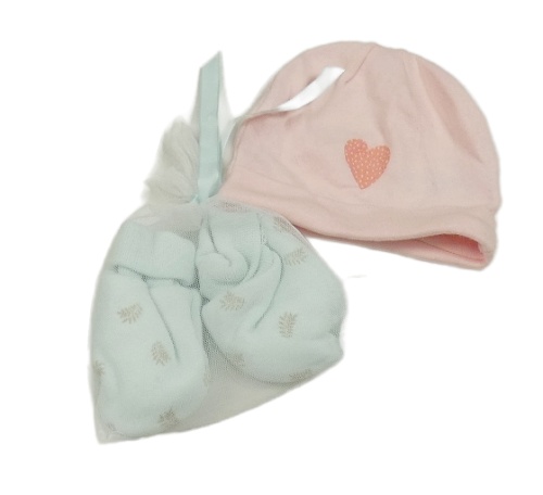 2Set - Světlerůžová čepice se srdíčkem + pomněnkové zateplené rukavice s listy - nové