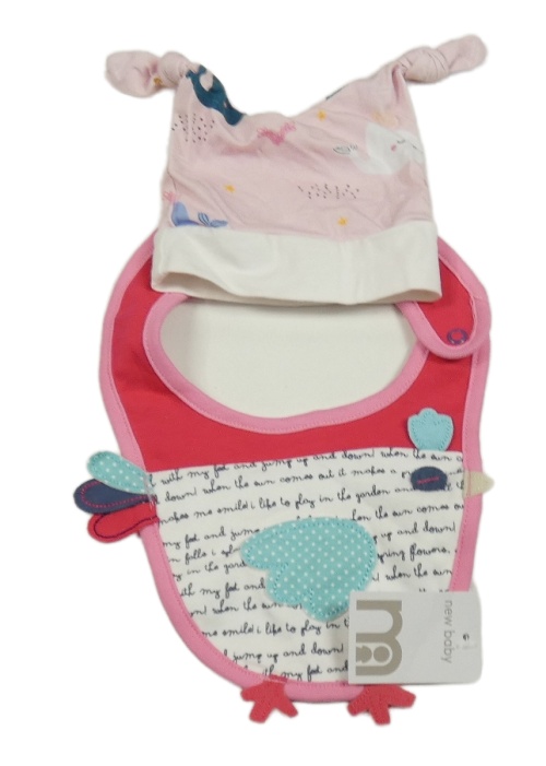 2set - Světlerůžová bavlněná čepice s velrybami + barevný pruhovaný slinták