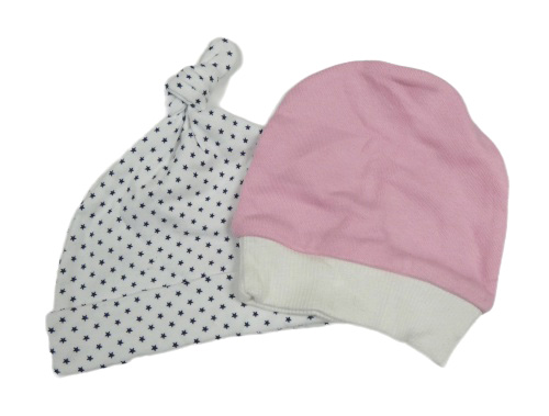 2x bavlněná čepice - bílá s hvězdami + růžová