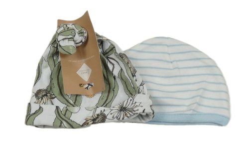 Nové - 2x - Čepice - Bílá s květy, bílo/světlemodrá pruhovaná