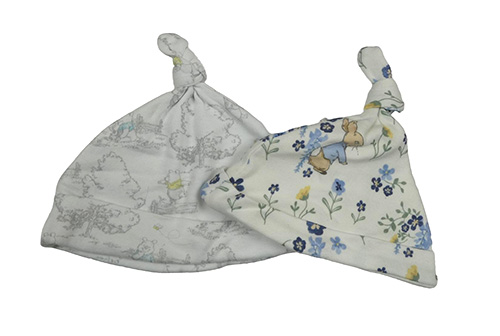 2x bavlněná čepice - smetanová květovaná s Peter Rabbit + bílá s Púem a přáteli