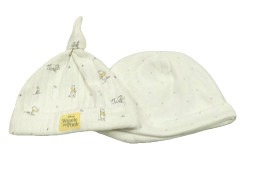• 2x smetanová bavlněná čepice - s hvězdami + žebrovaná s Púem a přáteli