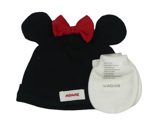 Nové - 2Set - Černá čepice s mašličkou a oušky - Minnie George + bílé rukavice