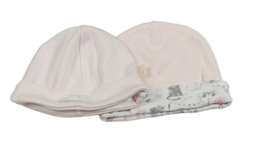 2x - Světlerůžová + světlerůžovo-bílá čepice s kočkami