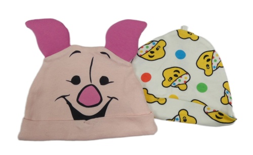 • 2x bavlněná čepice - smetanová puntíkatá s Pudseym + růžová - Prasátko