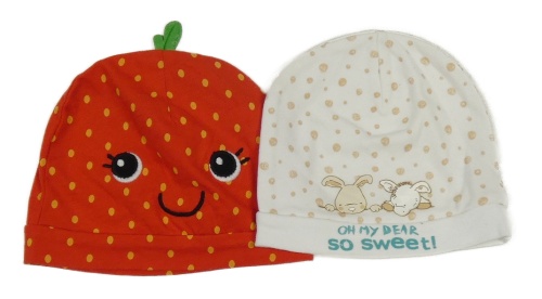 2x bavlněná čepice červená puntíkatá se smajlíkem+ bílá puntíkatá s obrázkem