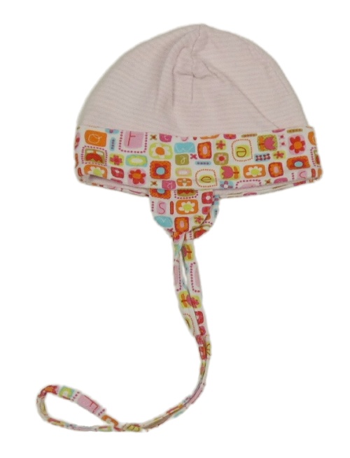 Růžovo-bílá pruhovaná čepice s kytičkami