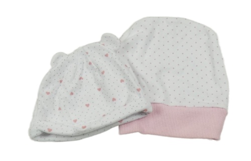 2x čepice bílá puntíkatá+ bílá puntíkatá se srdíčky