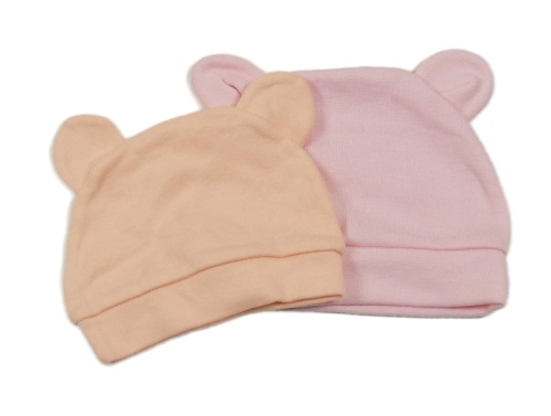 2x bavlněná čepice s oušky růžová+ lososová