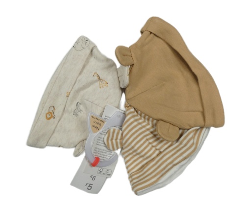 Nové - 3x - Béžová + pruhovaná + béžová čepice se zvířátky F&F