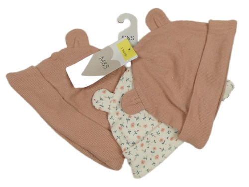 Nové - 3x - 2x Starorůžová + 1x kytičkovaná čepice M&S