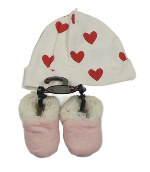 Nové - set - Bílá čepice se srdíčky + růžové semišové zateplené capáčky