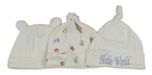 3x - Bílá + bílá s nápisem + bílá čepice se zajíčky