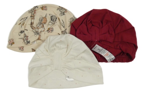 3x Vínová + smetanová s obrázky + bílá puntíkovaná turbanová čepice