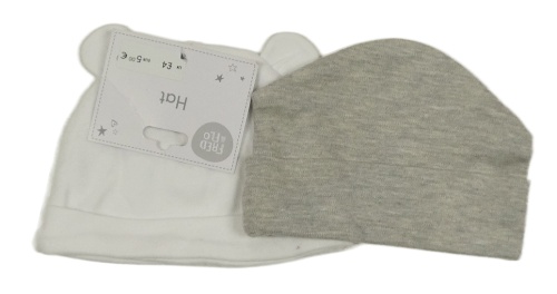 Nové - 2set - Šedá + bílá bavlněná čepice s oušky F&F