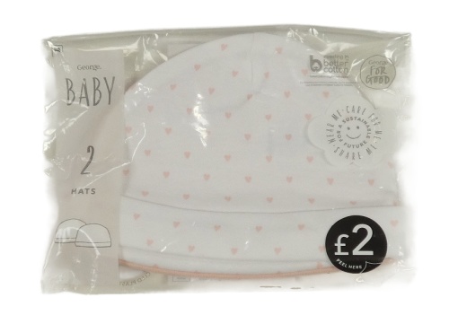 Nové - 2x - Čepice - Bílá se srdíčky, světlerůžová George
