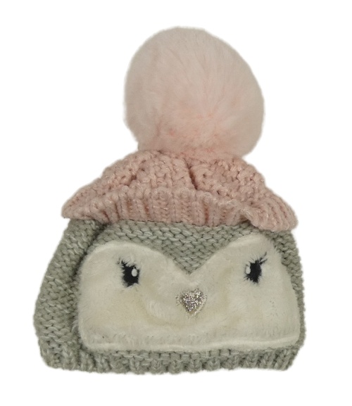 Světlešedo/růžová pletená čepice s bambulí - tučňáček F&F