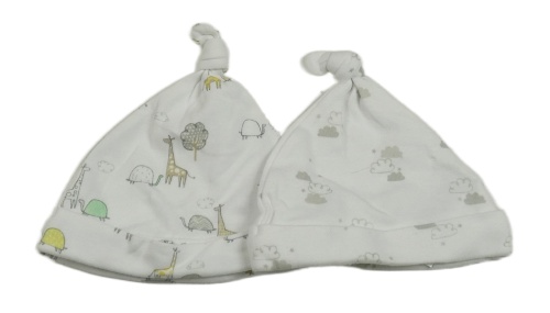 2x Bílá bavlněná čepice s mráčky + s obrázky