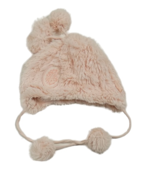 Světlerůžová chlupatá podšitá čepice s bambulkami