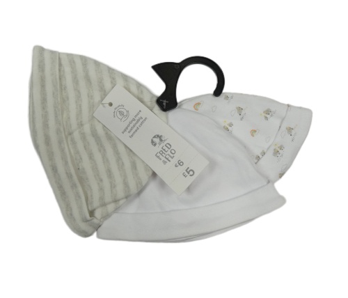 Nové - 3x - Bílá + bílá s ovečkami + šedo-bílá pruhovaná bavlněná čepice F&F