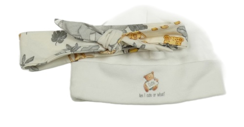 2set - Smetanová čepice + smetanová čelenka se zvířátky