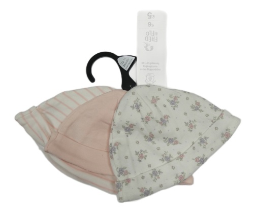 Nové - 3x - Bílá s kytičkami + růžová + bílo-růžová pruhovaná bavlněná čepice F&F